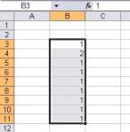 • What will happen if I pull down on the corner using the plus symbol making the 1×3 cell deep selection grow to 1×10?